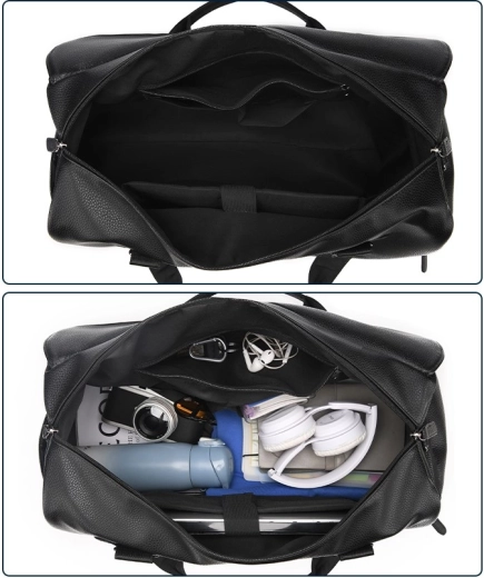 Potovalna, usnjena torba za telovadnico - črna
