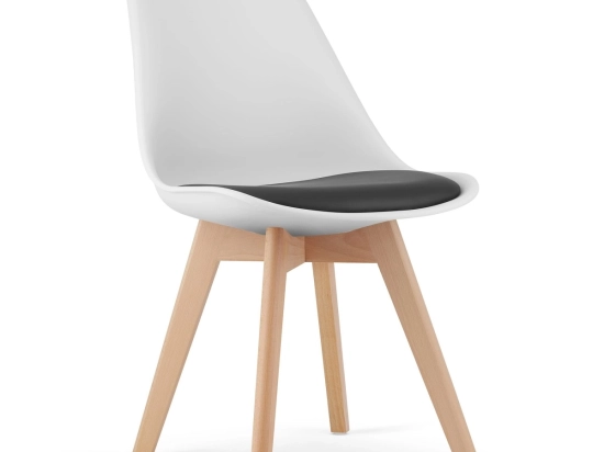 - Stoli so na voljo v črni in beli barvi z nogami v naravni barvi lesa.