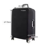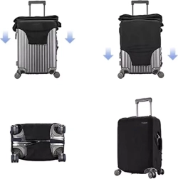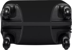 Zaradi natančnih izrezov za zgornje in stranske ročaje ter teleskopski ročaj lahko kovček uporabljate brez snemanja ovitka. Črna barva deluje elegantno in hkrati olajša personalizacijo in hitro prepoznavo na traku. Primerno za srednje kovčke velikosti L v razponu 67–70 × 45–50 × 26–30 cm.