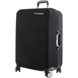 Ovitek za kovček L je izdelan iz vzdržljive kombinacije poliestra in spandexa, ki je prožna, trdna in se dobro prilagodi. Gostejša tkanina učinkovito ščiti pred obrabo, umazanijo in vlago zahvaljujoč vodoodbojnemu premazu. Namesti se v hipu – ovitek nataknete, zaprete zadrge in učvrstite z elastičnim trakom z zaponko.