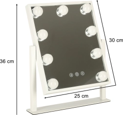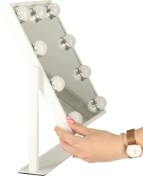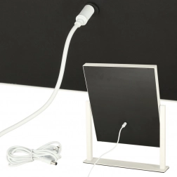 Minimalistična zasnova v beli barvi in vzdržljiv kovinski okvir s stabilnim stojalom in protidrsno obdelavo zagotavljata udobno uporabo tudi pri nastavljanju kota. Ogledalo je idealno za vsakodnevni make-up, kozmetične rituale ter natančne popravke obrvi ali kože.