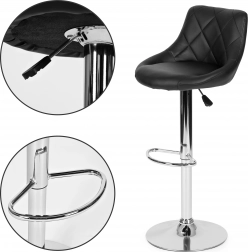 Ta moderen barski tabure s kromiranim ogrodjem in črnim sedežem iz umetnega usnja je izvrstna izbira za vsak interier. Primeren je tako za moderne kot tudi klasične prostore.