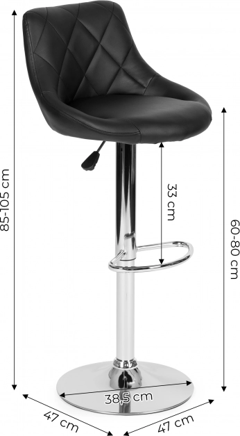 S stolom dimenzij 34x35 cm in možnostjo nastavitve višine od 60 cm do 80 cm, robustnim kovinskim ogrodjem in nosilnostjo do 120 kg, zagotavlja ta stol kakovost.