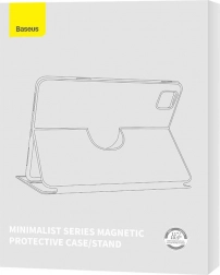 Stilsko magnetno ohišje BASEUS Minimalist je zasnovano za iPad Pro 11'' in iPad Air 4/5 10,9''. Minimalistični dizajn v svetlo sivi barvi dopolnjuje tanka, a čvrsta konstrukcija. Vgrajeno stojalo omogoča udobno pisanje, risanje in gledanje videov, medtem ko auto wake/sleep varčuje z baterijo z enostavnim odpiranjem in zapiranjem pokrova.