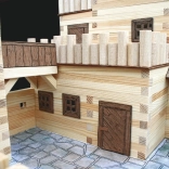 Leseni kvadratni letvi 9×9 mm in papirnati dodatki (okna, vrata, strehe) zagotavljajo verodostojen videz srednjeveške arhitekture.