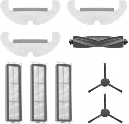 Ta komplet vsebuje vse osnovne komponente: glavno krtačo, dve stranski krtači, tri filtre in tri čistilne/mop blazinice.