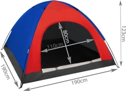 Šotor je primeren za vikend kampiranje, ribolov in izlete izven mesta. Dvosmerna zadrga olajša vstop, posebno oblikovani vijačni koli izboljšajo sidranje, trpežno dno pa ščiti pred vlago in umazanijo.