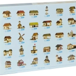 - Leseni kvadri 9×9 mm in papirnati dodatki, vključno z okni in vrati