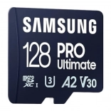 Samsung PRO Ultimate microSDXC s kapaciteto 128 GB prinaša vrhunsko zmogljivost za hitre prenose in tekoče 4K snemanje. Z hitrostmi do 200 MB/s pri branju in 130 MB/s pri zapisu zanesljivo obvlada velike datoteke, zaporedni zapis in delo z aplikacijami.