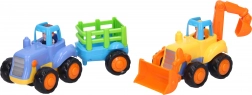 Pripravite se na ure ustvarjalne igre na kmetiji in na gradbišču. Vozila z pogonom na vztrajnik se po potisku sama zapeljejo, zato se zabava začne takoj in brez baterij.