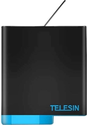 Polnilnik Telesin omogoča sočasno polnjenje treh baterij, kar je idealno za dolgotrajno snemanje in potovanja.