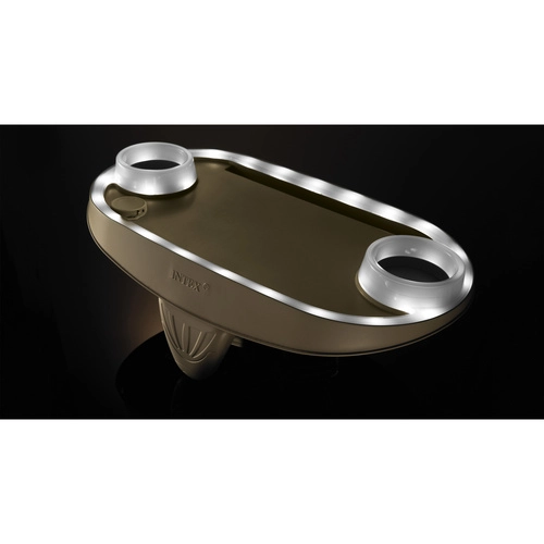Polica z LED osvetlitvijo za SPA INTEX je pameten dodatek, ki poveča udobje med vašim počitkom. Enostavno jo namestite na rob masažnega bazena in takoj dobite stabilen prostor za pijače in elektroniko. Nežna LED svetloba ustvari prijetno atmosfero in polepša vsak večer v masažnem bazenu.