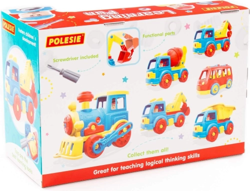 Del pakiranja sta plastičen izvijač in figurica gradbenika, ki jo je mogoče posesti v prostorno kabino. Igrača je izdelana iz trpežne plastike in izpolnjuje standarda CE in EN71.