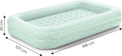 Ta napihljiva vzmetnica je zasnovana za otroke in ima rahlo dvignjene robove, ki preprečujejo padce z vzmetnice. Je idealna za notranjo uporabo kot otroška postelja.