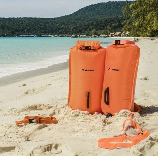 Plavalna plovka Trizand ponuja kombinacijo varnosti in prostora za shranjevanje v eni praktični napravi. Zaradi jasno oranžne barve zagotavlja odlično vidljivost in hkrati omogoča shranjevanje pomembnih stvari v vodotesnem žepu.