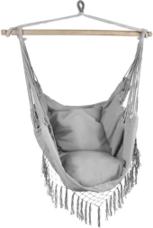 Uživajte v sprostitvi doma in na prostem z visečim brazilskim stolom Gardlov v elegantni sivi barvi. Kombinacija bombaža in poliestra zagotavlja zračnost in vzdržljivost, lesena prečka pa stabilnost in udoben položaj. V paketu prejmete 2 mehki blazini za maksimalno udobje. Idealno za teraso, balkon in vrt.
