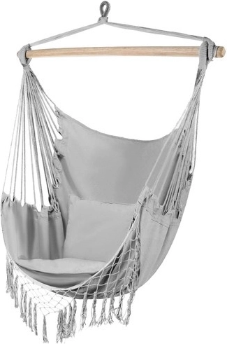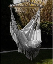 Ta udoben viseči stol v stilu viseče mreže je zasnovan za vsakodnevni počitek – od kratke sieste do branja najljubše knjige. Naravni bombaž z dodatkom poliestra je prijeten na dotik, dobro zrači in hkrati ohranja visoko odpornost proti obrabi.