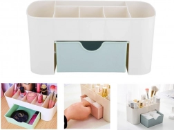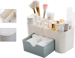 Stilska zasnova tega organizatorja ne le elegantno zapolni vsak interier, ampak zaradi odstranljivega predala nudi odlično prilagodljivost za vaše potrebe. Izdelan v sivi barvi, prinaša v vašo kozmetično rutino pridih uglajene elegance.