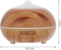 Ustvarite prijetno mikroklimo doma ali v pisarni. Ta dizajnerski difuzor z videzom lesa vlaži zrak s pomočjo ultrazvočne tehnologije, ki vodo pretvarja v fino meglico, hkrati pa omogoča aromaterapijo z najljubšimi dišavami. Zahvaljujoč prostornini 400 ml deluje do 14 ur na eno polnjenje in ostaja izjemno tih (≤ 36 dB). Vgrajena ionizacija pomaga ohranjati zrak svež in prijeten.