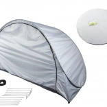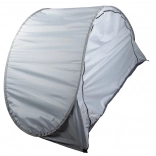 Samorazpirajoči se plažni šotor v elegantni sivi barvi zagotovi prijetno senco in zasebnost v vročih dneh. Zaradi pametnega mehanizma se postavi skoraj takoj, zato lahko več časa namenite počitku. Material z UV zaščito pomaga zmanjšati vpliv sončnega sevanja, medtem ko aerodinamična oblika bolje kljubuje vetru.