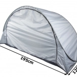 Šotor je lahek, enostaven za prenašanje in po zlaganju zavzame zelo malo prostora. Zaprto izvedbo ter možnost sidranja s klini povečata stabilnost in udobje. Mere 195 × 120 × 95 cm so idealne za 1–2 osebi, bodisi na plaži, na vrtu, pri kampiranju ali kot igralni kotiček za otroke.