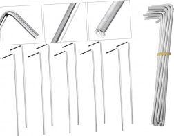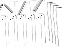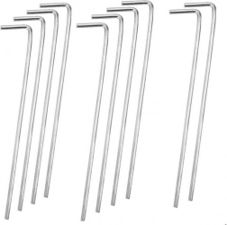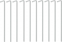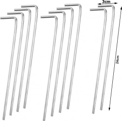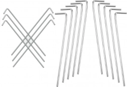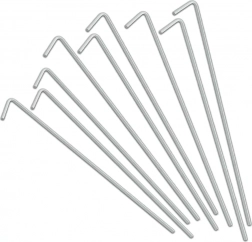 Praktičen set 10 jeklenih količkov z L zaključkom je idealen za kampiranje, vrt in pohodništvo. Zaradi premera 4 mm in dolžine 24 cm količki zanesljivo držijo v travi, zemlji in gramozu ter preprečujejo popuščanje vrvic ali trakov. Preprosta oblika omogoča hitro zabijanje in izvleko.
