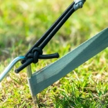 Kljukasto in zankasto zaključeno omogoča udobno pritrditev različnih vrvic in trakov ter pospeši postavitev šotora.