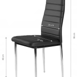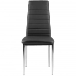 Izberite brezčasen dizajn in praktičnost. Črno oblazinjenje iz eko usnja se odlično poda k sijočim kromiranim nogam, zato se stoli lepo vključijo tako v moderne kot klasične interierje. Visoko, ergonomsko oblikovano naslonjalo in mehko oblazinjenje podpirata pravilno sedenje ter udobje pri dolgem obedovanju.