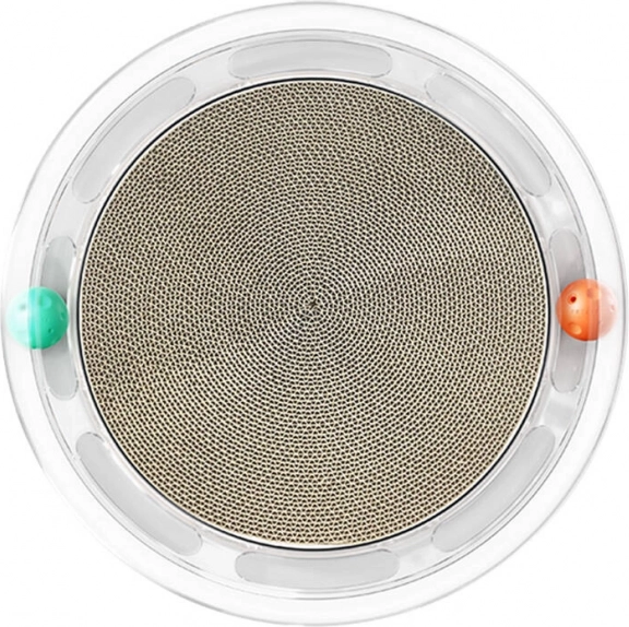 Praskalo PETKIT je pametno mini igrišče za mačke, ki združuje naravno potrebo po praskanju z interaktivno igro. Steza ob obodu skriva dve barvni krogli – oranžna z ropotuljico prebuja lovske nagone, medtem ko zelena z vonjem mačje mete vabi k nadaljnji igri. Sredica iz kakovostnega valovitega kartona služi kot udoben prostor za praskanje in počitek.