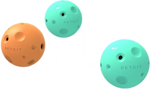 Oranžna žogica z ropotuljico spodbuja sluh in lovske nagone, zelena z vonjem mačje mete (catnip) pa vabi k nadaljnji igri. Idealna kombinacija za aktivne mačke.