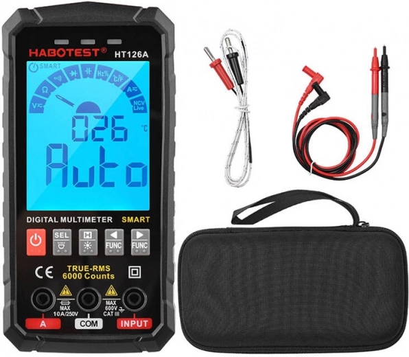 Digitalni multimeter Habotest HT126A je zasnovan za natančna merjenja in enostavno uporabo. Opremljen je z velikim LCD-zaslonom, ki omogoča hiter dostop do vseh potrebnih informacij o meritvah. Zaradi kompaktnih dimenzij in lahke konstrukcije je idealen za prenašanje.