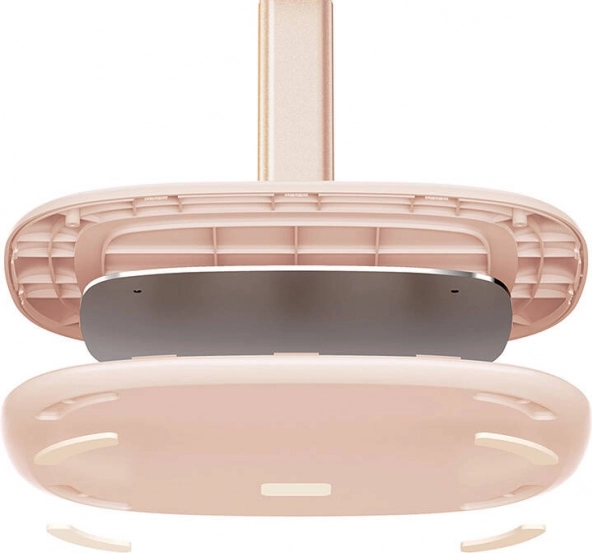Inovativna zasnova s široko osnovo in silikonskimi elementi zagotavlja stabilnost in preprečuje drsenje po površini mize. V osnovo lahko shranite manjše dodatke, kot so slušalke ali pametna ura.