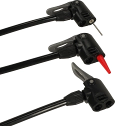 - Univerzalna dvojna glava: Zlahka se prilagodi vsem vrstam kolesarskih ventilov ter zagotavlja hitro in učinkovito polnjenje pnevmatik.