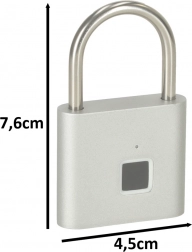 Dostop upravljajte preprosto: shranite do 10 prstnih odtisov, ki jih lahko kadar koli dodate ali izbrišete. Vgrajena baterija 3,7 V omogoča več mesecev delovanja, polnjenje pa je udobno prek priloženega kabla micro‑USB.