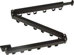 Kotna letvica s fiksnimi kljukicami in tečajem omogoča praktično shranjevanje ob steni ter razpiranje le, ko je to potrebno.