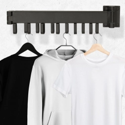 Vzpostavite red doma in pridobite več prostora s pametnim stenskim sušilnikom, ki se prilagodi vašim potrebam. Teleskopska roka omogoča izvlek do 90 cm, zato hkrati sprejme več kosov oblačil, po sušenju pa ga preprosto zložite k steni. Minimalistična, a vzdržljiva kovinska zasnova se odlično poda tako v moderne kot klasične domove.