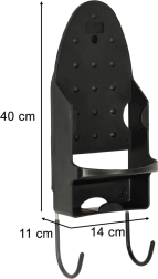 Eleganten črn nosilec prihrani prostor v pralnici, kopalnici ali garderobi ter zagotavlja varno in pregledno shranjevanje pripomočkov za likanje. Trpežna izvedba iz PBT omogoča odlaganje likalnika takoj po končanem likanju, brez čakanja, da se ohladi.