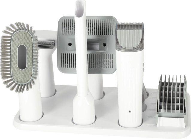 Celovit grooming set WMARK Pet vam olajša čiščenje in nego hišnih ljubljenčkov. Združuje sesanje dlake neposredno med česanjem, tri ravni sesalne moči za občutljive ljubljenčke, filter za zajemanje prahu in alergenov ter bogat nabor dodatkov za striženje, krtačenje in natančno urejanje.