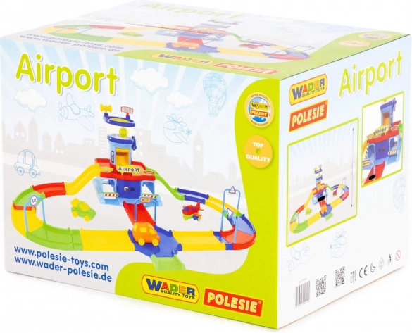 Osrednji stolp in letališka zgradba igri dodata pristno noto – otroci lahko usmerjajo promet, pristanke in odlete.