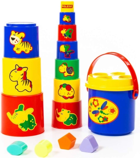 Igrača je odličen sopotnik za najmlajše in jih s pomočjo igre ter slik nauči novih živali, barv in oblik. Poleg tega je piramido po koncu igranja preprosto pospraviti v priloženo vedro.