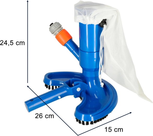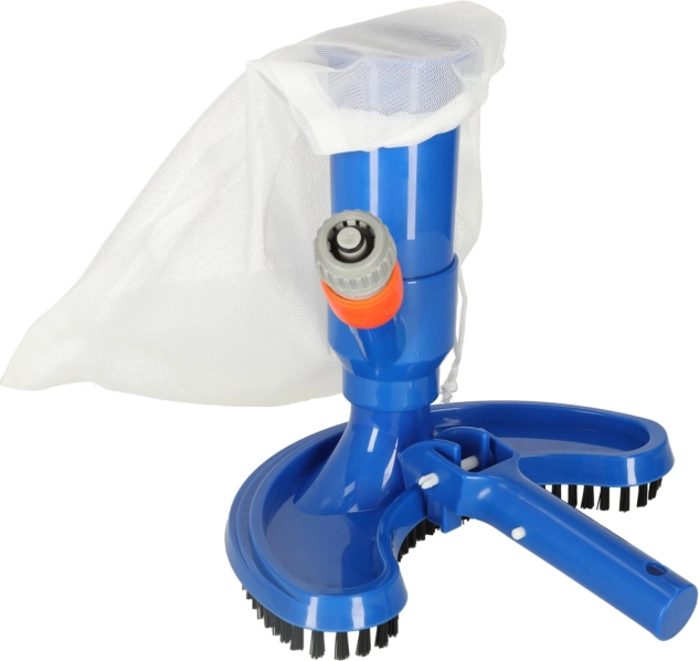 Ročni bazenski sesalnik za preprosto čiščenje dna, sten in stopnic bazenov ter vrtnih ribnikov. Uporablja tlak vode iz vrtne cevi in nečistoče zajame v večkrat uporabno mrežasto vrečko. Polkrožna glava s ščetkami doseže tudi kote, hitri priključek omogoča hitro priključitev, enostavna uporaba pa ne zahteva nobenega orodja.