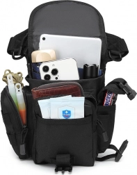 Pametna razporeditev žepov, vključno z žepom za svetilko ali pero in nosilcem za vponko, poskrbi, da so mobilni telefon, denarnica, ključi ali manjše orodje vedno na svojem mestu. Vzdržljiva tkanina z vodoodporno obdelavo in robustnim prešitjem se izkaže tako na terenu kot v mestu. Zahvaljujoč pritrditvi na pas in stegno imate proste roke in opremo vedno pri roki.