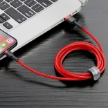 Vzdržljiv polnilni in podatkovni kabel BASEUS Cafule s konektorji USB – Lightning ponuja hitro polnjenje do 2,4 A in prenos podatkov 480 Mb/s. Zahvaljujoč tekstilnemu opletu, aluminijastim konektorjem in priloženemu trakcu na ježka je kabel izjemno trpežen, odporen proti zapletanju in idealen za vsakodnevno uporabo.