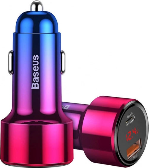 Stilski rdeče‑modri avtopolnilec BASEUS Magic se inteligentno prilagodi potrebam vaše naprave in zagotovi hitro in nežno polnjenje med vožnjo. S kombinacijo priključkov USB‑C in USB‑A boste brez težav hkrati polnili dve napravi – od pametnih telefonov in tablic do dodatne opreme.