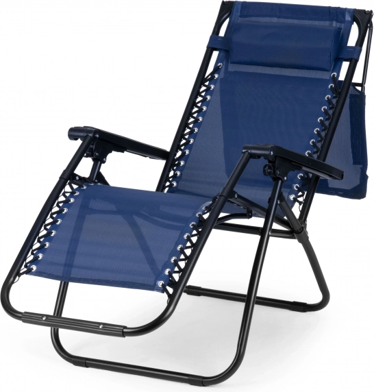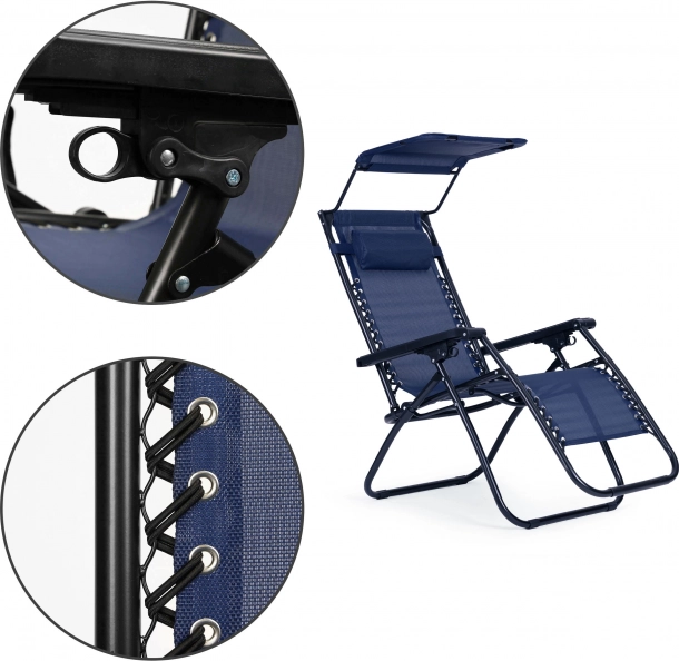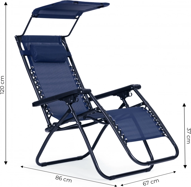 Zložljiv nastavljiv vrtni / plažni stol s senčnikom modre barve