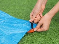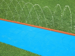 Sama namestitev je enostavna. Dovolj je, da tobogan razgrnete na travo, priključite cev in uživate ure vodne zabave na svežem zraku.