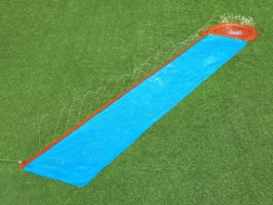 Ta tobogan je opremljen s sistemom vodnih šob, ki zagotavlja optimalno vlaženje površine in omogoča enostavno drsenje. Integrirane šobe se aktivirajo po priključitvi vrtne cevi. Konstrukcija omogoča mehko in varno zaključevanje zahvaljujoč napihljivemu koncu. Izdelana iz trpežnega vinila, zagotavlja dolgo življenjsko dobo.