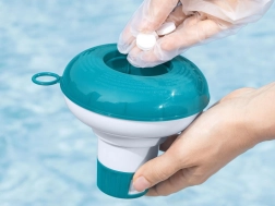 Praktičen plavajoči dozirnik klora Bestway skrbi za neprekinjeno doziranje bazenske kemije in vzdrževanje kristalno čiste vode skozi celo sezono. Dovolj je, da vstavite klorove tablete s premerom do 2,5 cm (niso priložene), dozirnik pa jih varno in enakomerno razporedi po celotni gladini.
