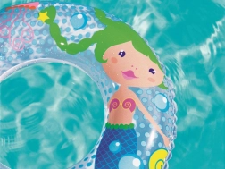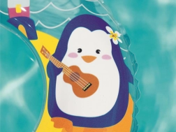 Veseli potiski s pingvini, morskimi vilami in tropskimi motivi pritegnejo pozornost in spodbujajo daljšo igro v vodi.
