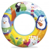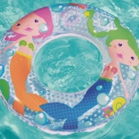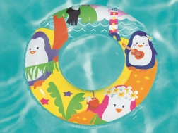 Obroč je izdelan iz vzdržljivega PVC, dobro drži obliko in zahvaljujoč povratnemu ventilu ne prihaja do neželenega uhajanja zraka. Nizka teža in kompaktne mere ga delajo idealno izbiro za bazen, plažo in jezero. Pakirano v praktični barviti embalaži – odlično tudi kot darilo.